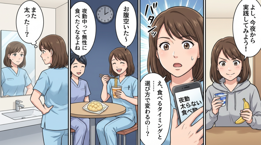 この記事を読めば、「夜勤=太る」の悩みから解放されます。