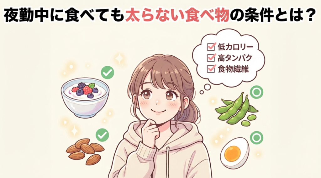 ここでは、夜勤中に食べても太りにくい食べ物の条件を解説します。