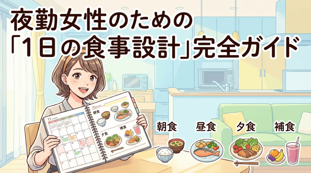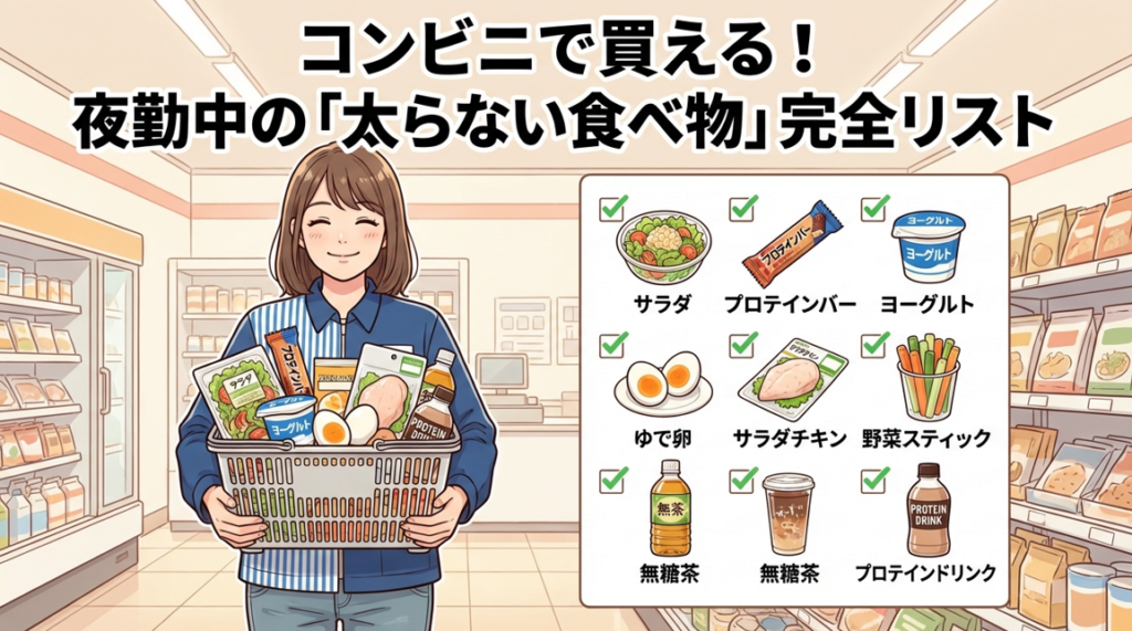 さらに、なぜ夜勤で太りやすいのかの科学的理由や、コンビニで手軽に買える商品、夜勤明けの食事のコツ、1日全体の食事設計まで徹底解説します。