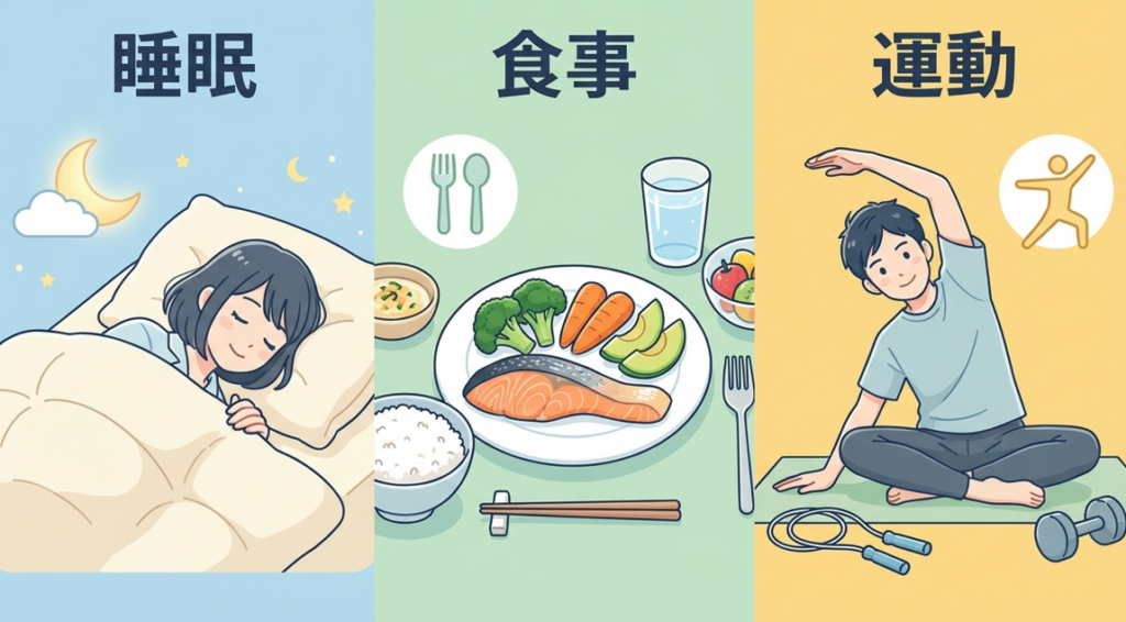 - 睡眠管理:夜勤後にしっかり眠れる環境を整える(遮光カーテン、耳栓、静かな部屋など)